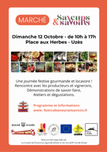 Dimanche 12 octobre – 10h-17h – Place aux Herbes d’Uzès